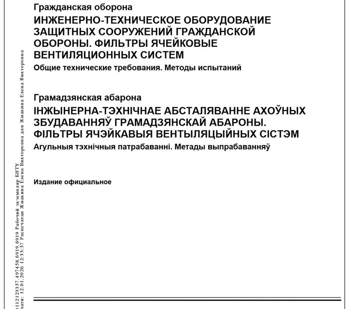 5 ГОСТ 42.4.18-2025. Гражданская оборона. Инженерно-техническое оборудование защитных сооружений гражданской обороны. Фильтры ячейковые вентиляционных систем. Общие технические требования. Методы испытаний: дата введ. 2026-03-01 / разработан… Подробнее »ГОСТ 42.4.18-2025. Гражданская оборона. Инженерно-техническое оборудование защитных сооружений гражданской обороны. Фильтры ячейковые вентиляционных систем. Общие технические требования. Методы испытаний