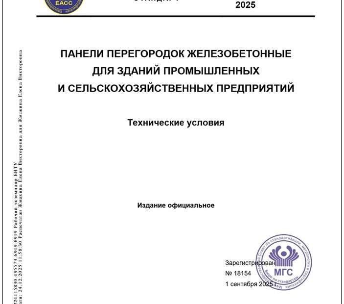 ГОСТ 25098-2025. Панели перегородок железобетонные для зданий промышленных и сельскохозяйственных предприятий. Технические условия