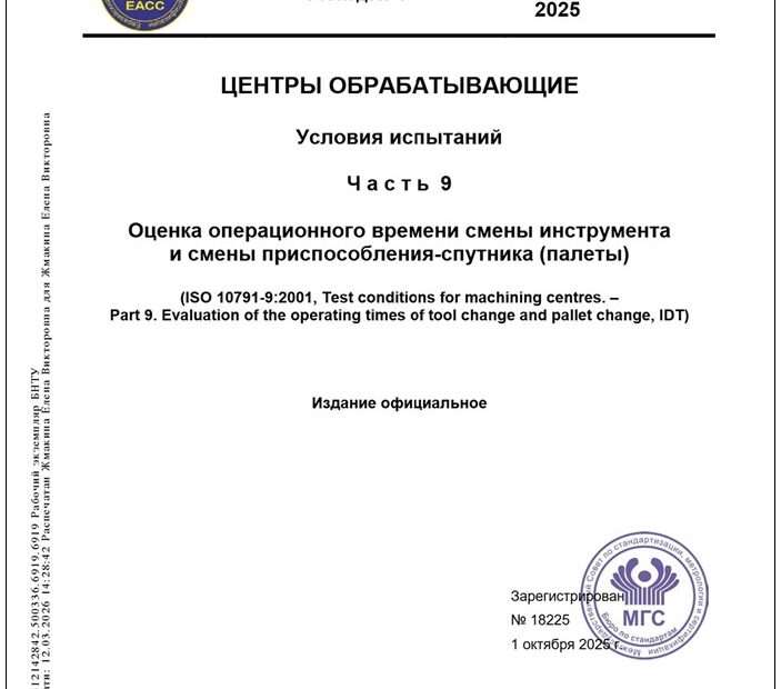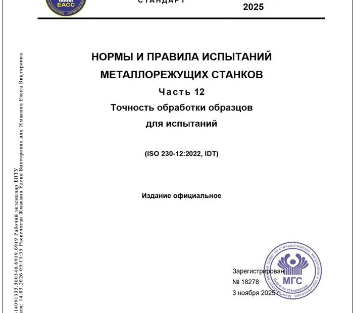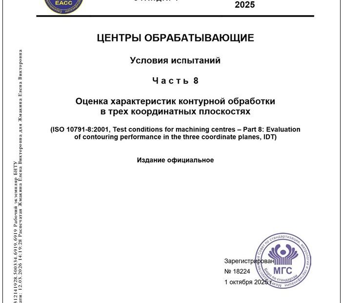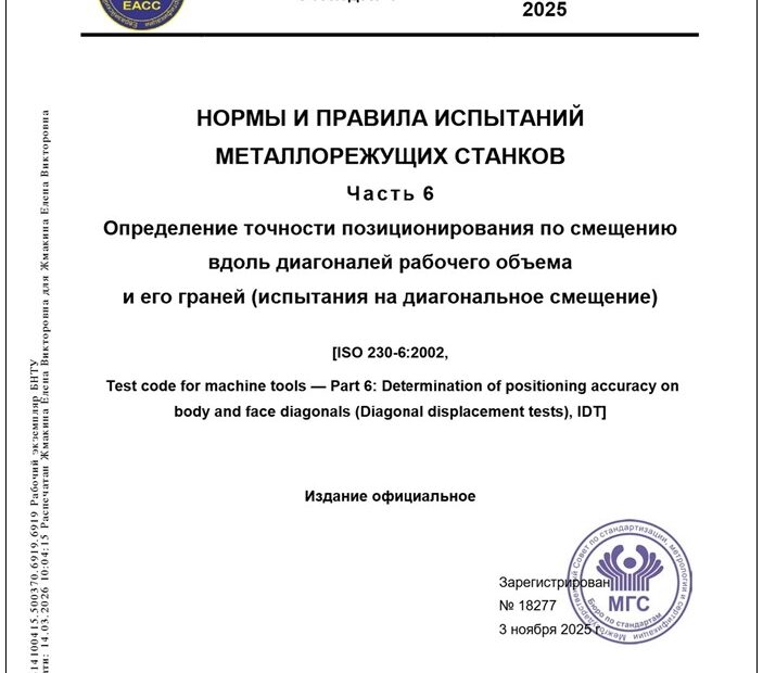 4 ГОСТ ISO 230-6-2025. Нормы и правила испытаний металлорежущих станков. Часть 6. Определение точности позиционирования по смещению вдоль диагоналей рабочего объема и его граней (испытания… Подробнее »ГОСТ ISO 230-6-2025. Нормы и правила испытаний металлорежущих станков. Часть 6. Определение точности позиционирования по смещению вдоль диагоналей рабочего объема и его граней (испытания на диагональное смещение)