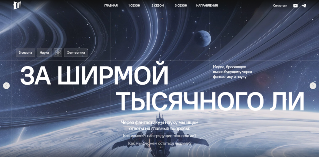 «За ширмой тысячного ли» — это медиа, которое бросает вызов будущему, предлагая говорить о нём языком историй, образов и реальных научных фактов. Проект исследует пространство между фантастикой и наукой: от истоков жанра и диалога с его мастерами — к анализу современных открытий и прогнозам на 2030–2040 годы.